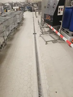 An integral part of any professional industrial flooring is appropriate linear and point drainage systems made of stainless steel. These systems ensure efficient water removal, reduce slip hazards, and prevent liquid pooling. Thanks to the use of V2A or V4A stainless steel, the drainage systems are highly resistant to corrosion, aggressive chemicals, and extreme temperatures. They are also easy to clean, which is essential in industries with the highest sanitary requirements.